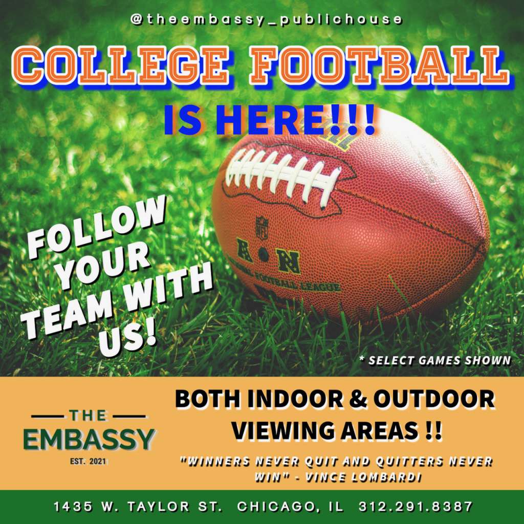 Welcome to The Embassy, a new favorite located in Chicago's Little Italy neighborhood. Drinks, sports and food always brings people together. That's why The Embassy crafted the simple purpose of helping people spend meaningful time with each other. With 20 tv's you can enjoy watching every minute of the match, game or race. Enjoy our outdoor patio that also has tv's with sound or throw a game of darts.